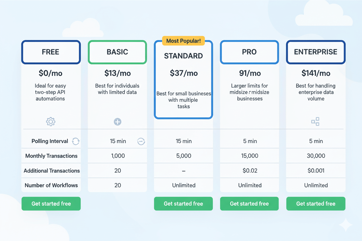 Build a tiny revenue-adjacent workflow first—lead to CRM, email, and sheet—then watch usage. When you pass the allowance, top up; when growth holds, step up a tier. Simple math. Clear levers. Better control.