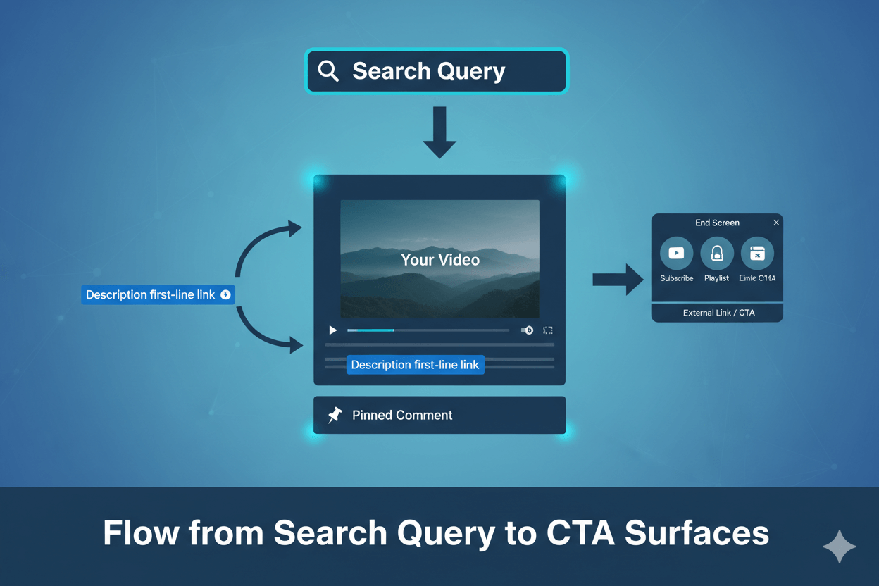 Place your primary link in the first line of a long-form description. Add a pinned comment that repeats the link and reason to click. In the last 5–20 seconds, add end screens to push one logical next step: a review, a tutorial, or a signup video.