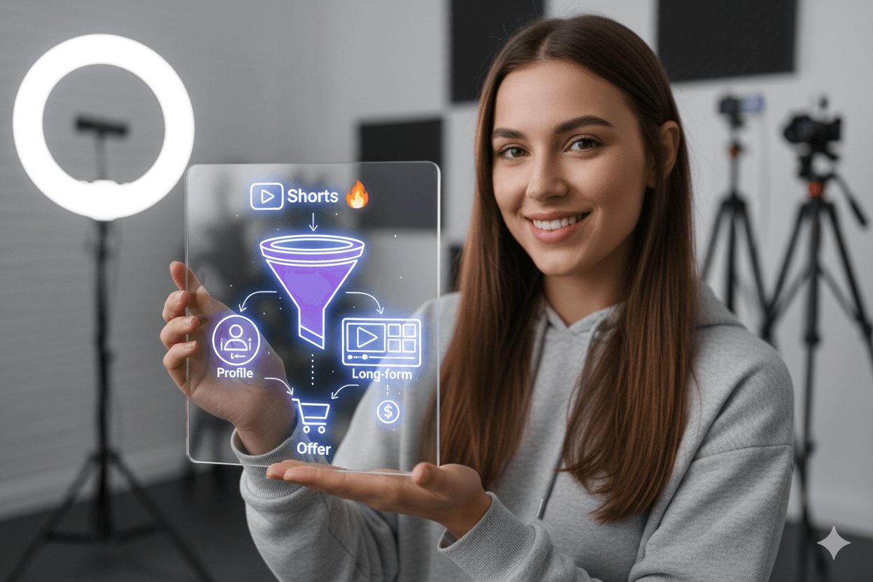 Shorts spark interest. Long-form closes the loop. Build a clean path: Short → channel profile or companion long-form → description first-line link and pinned comment.