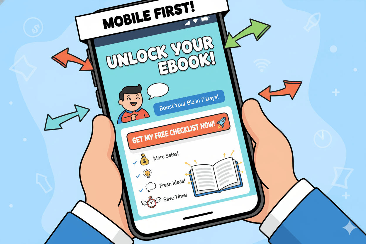 Build for phones first. Most sessions are mobile, so your hero, proof bullets, and CTA must be thumb-easy. Keep one action per page. Minimize form fields to name + email, then stage any qualifiers. Repeat the same CTA after proof and near the footer.