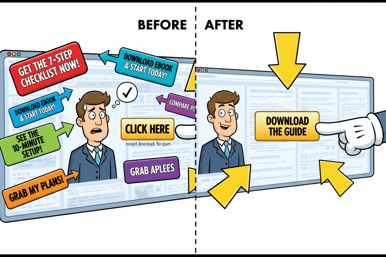 Use a single action. Split focus costs conversions. Your CTA copy should combine action + outcome + timeframe, e.g., “Get the 7-step checklist now.” Keep navigation minimal, avoid competing offers, and align the page promise with the ebook cover and popup headline.