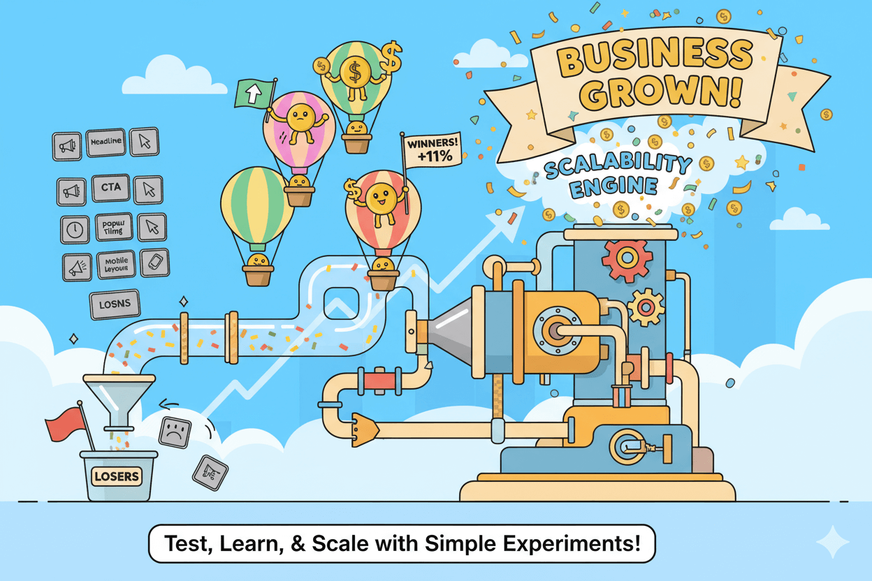 Start where friction is highest or traffic is largest. Good first tests: headline clarity, CTA copy, popup trigger and timing, field count, and mobile first-screen layout. Respect single-variable discipline so you can attribute gains.