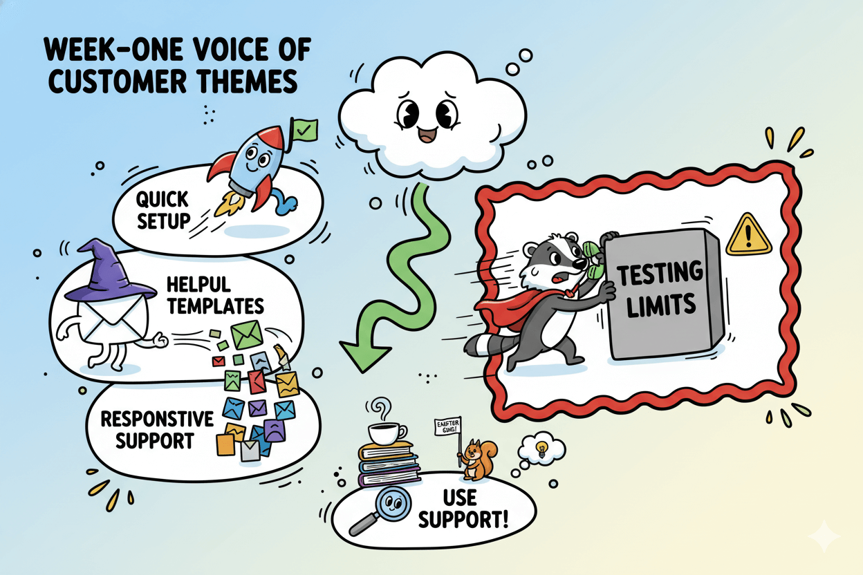“Sent in a day.” Reviews cite quick setup, helpful templates, and responsive support for Tinyemail.